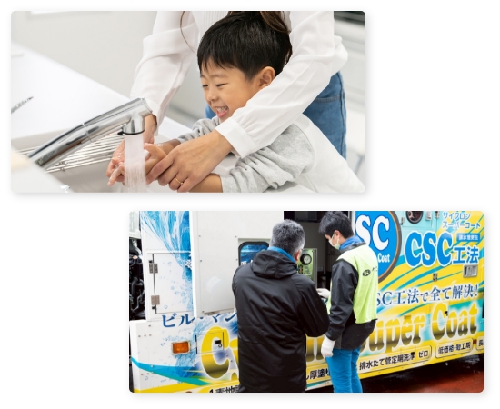 私たちは、マンションや建物の給排水管工事、不動産開発を通じて、人々の生活を支えています。目には見えにくい配管設備の更新・更生から、住環境の再生、資産価値の向上まで。毎日の「当たり前」を守り続ける、誇りある仕事です。