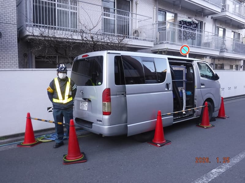 高圧洗浄車を使用し、排水管内部に付着した油汚れ・石鹸カス・髪の毛などを除去します。つまりや悪臭の予防はもちろん、配管の延命にも効果的。年1回の定期洗浄をお勧めします。